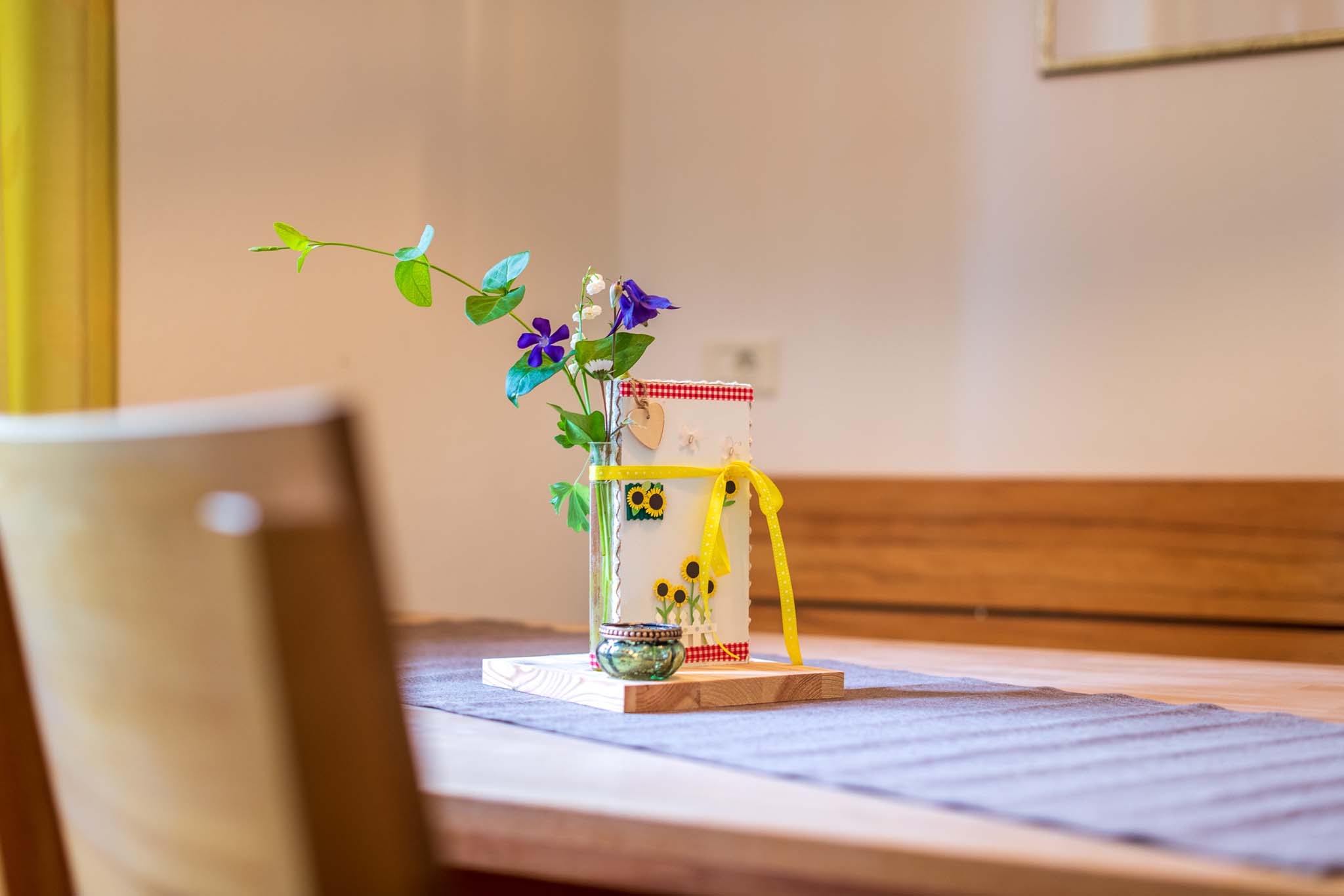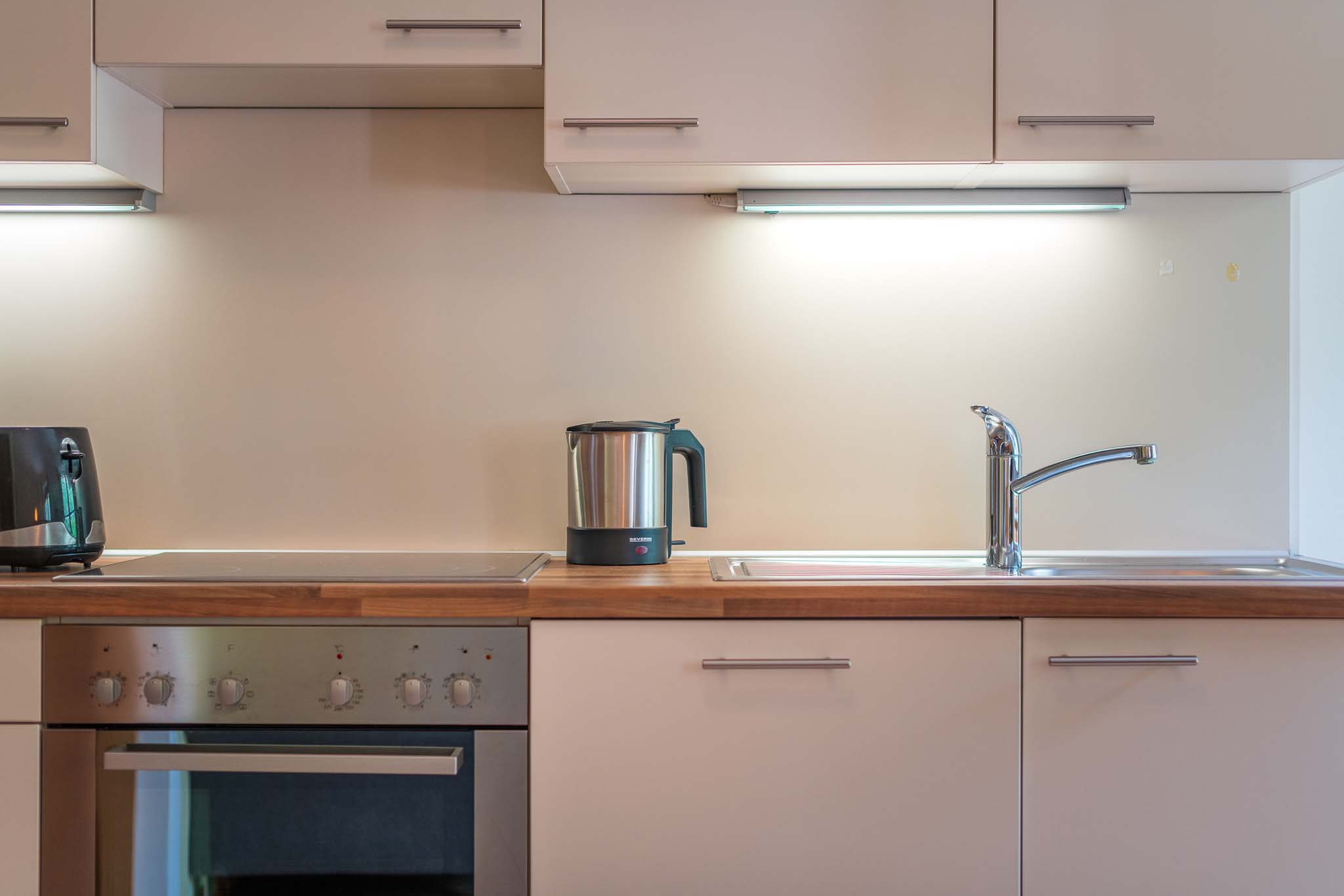 Ausstattung: Wohnküche mit Kaffeemaschine, Kühlschrank mit Gefrierfach, Wasserkocher, Toaster, E-Herd, Spülmaschine, 1 Schlafzimmer, 1 Kinderzimmer, jeweils mit WC, Dusche und Fön, sehr großer Balkon mit Mobiliar und schönem Blick zum Rosengarten, SAT-TV, W-LAN, Wandsafe.